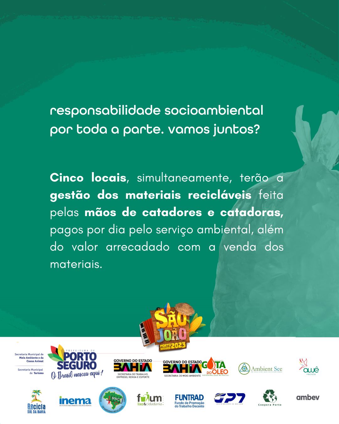 Promovendo a sustentabilidade e o trabalho digno: uma parceria importante está se formando em Porto Seguro. Os catadores de materiais recicláveis terão uma contribuição fixa diariamente, reconhecendo o valor de seus serviços ambientais e gerando renda com os materiais destinados à reciclagem.