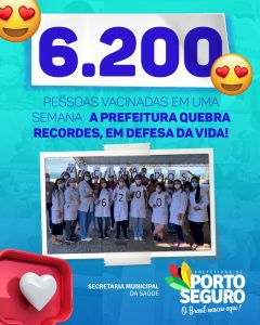 Num esforço espetacular e mobilização ordenada de pessoal, o município de Porto Seguro vacinou, nesta semana que se encerrou 6200 pessoas entre 1ª e 2ª dose e dose única.