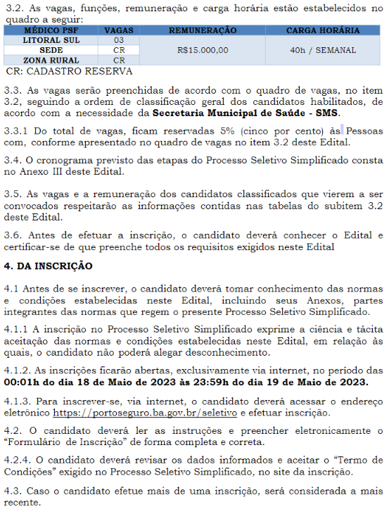 A Prefeitura de Porto Seguro por meio da Secretaria Municipal de Saúde divulga a abertura de um novo Processo Seletivo que tem como objetivo a contratação de médico PSF, por tempo determinado.