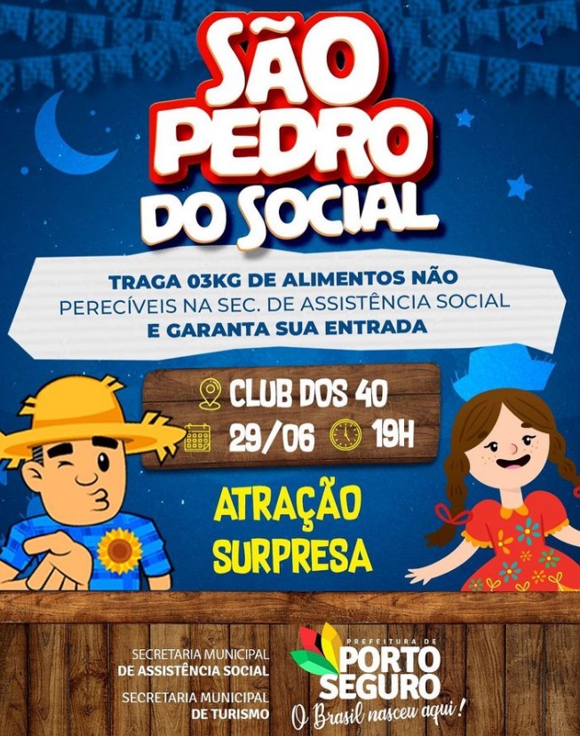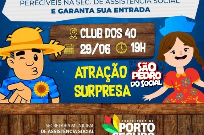 A Prefeitura de Porto Seguro preparou uma festa linda para você se divertir, ouvir boa música e dançar aquele forrózinho aconchegante. É o São Pedro do Social!