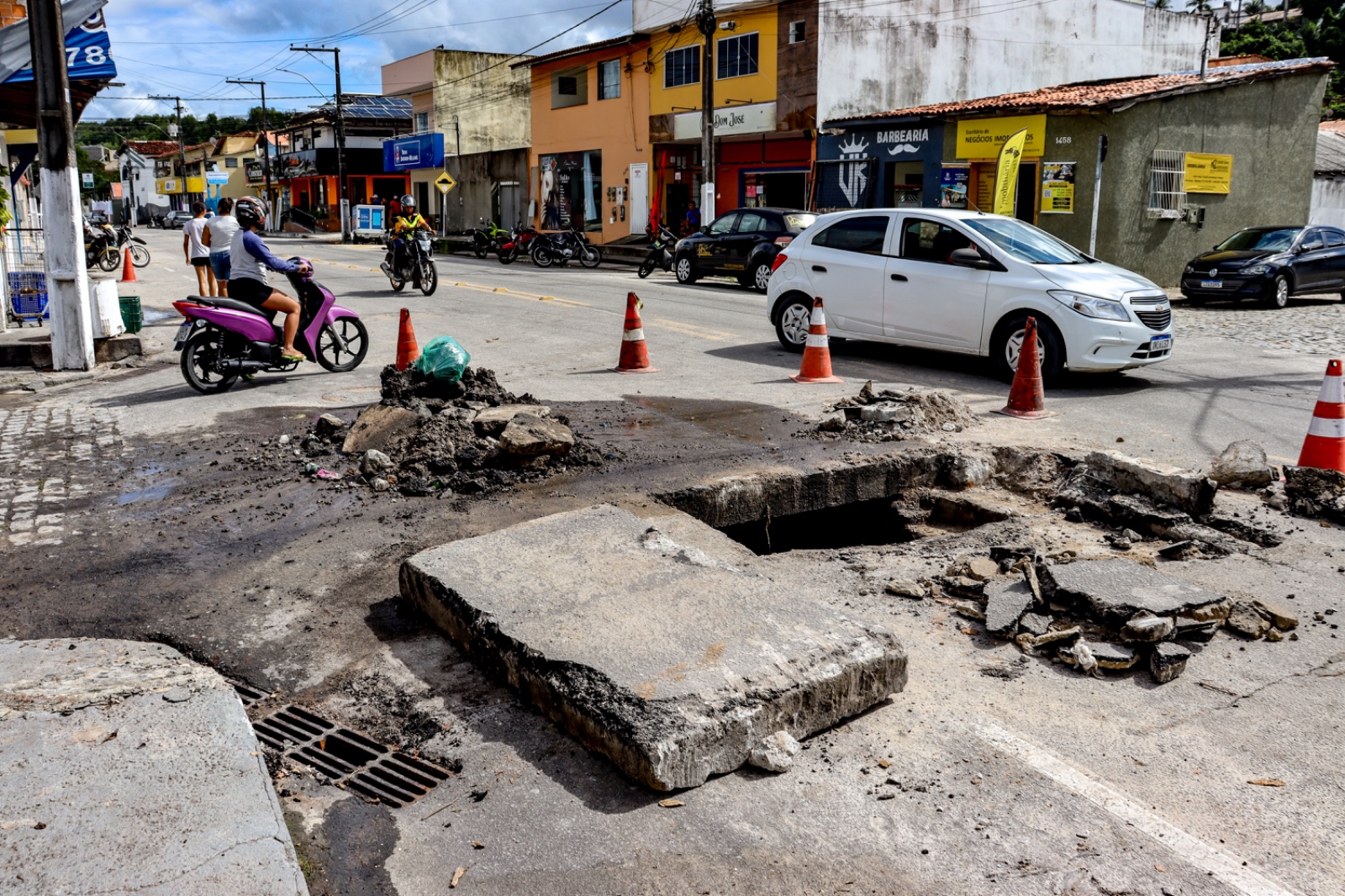 Para a realização do serviço, foi necessário quebrar o asfalto feito pela gestão anterior. “A galeria nunca foi limpa, estava cheia de areia, concreto e lixo. A antiga administração jogou asfalto por cima sem sequer fazer a limpeza”, explicou o secretário municipal Denisson Matos, informando que foram mais de 30 anos sem efetuar a limpeza.
