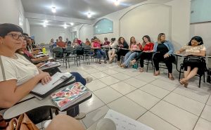 Durante a oficina, foram discutidas estratégias para aprimorar o fluxo de atendimento, fortalecer a notificação e ampliar a atuação conjunta entre Unidades Básicas de Saúde, Vigilância Epidemiológica, Hospital Regional, CAPS, Conselho Tutelar e demais serviços da rede de proteção.