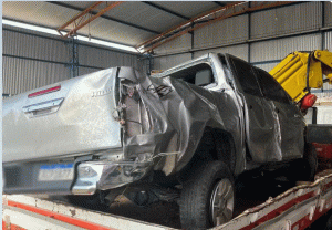 A outra caminhonete envolvida no acidente também não conseguiu evitar a batida e foi o segundo veículo a bater no carro de passeio que rodava na pista. Depois de ser atingido pelas duas caminhonetes, o carro ainda colidiu na lateral de um caminhão que passava na rodovia. Com o impacto, o motor do carro de passeio se soltou do veículo.