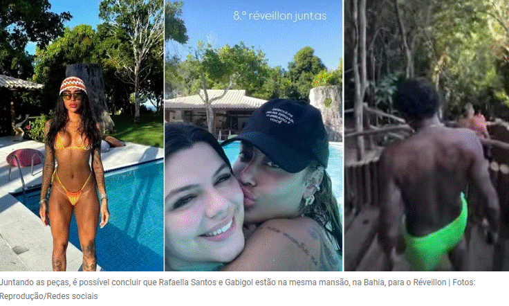 Do Japão para a Bahia. Gabigol e Rafaella Santos já desembarcaram em Trancoso para aproveitar o Réveillon mais badalado da Bahia. O próprio jogador entregou sua presença no litoral baiano ao repostar um vídeo da praia feito pelo fotógrafo Junior Abrantes. O atacante também aparece fazendo uma trilha em outro vídeo feito por Junior, que, por sinal, é o fotógrafo oficial da irmã de Neymar.