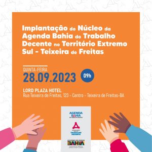 Dando seguimento à ampliação da Rede da Agenda Bahia do Trabalho Decente (RABTD), os municípios de Teixeira de Freitas e Porto Seguro terão núcleos da Agenda implantados na quinta-feira (28/09) e sexta-feira (29/09), os quais funcionarão como sede dos Territórios de Identidade Extremo Sul e Costa do Descobrimento, respectivamente. Juntos os dois territórios reúnem 21 municípios.