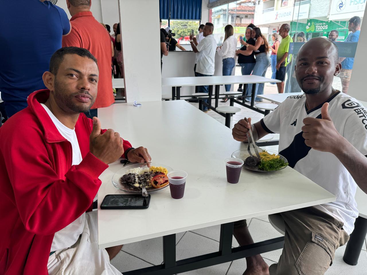 ambiente muito limpo e aconchegante ou, se preferir, levar uma quentinha para casa ou o local de trabalho. No cardápio da inauguração foram servidos itens como arroz, feijoada, farofa, frango a passarinho, salada de alface, tomate e beterraba, além de um copo de suco.