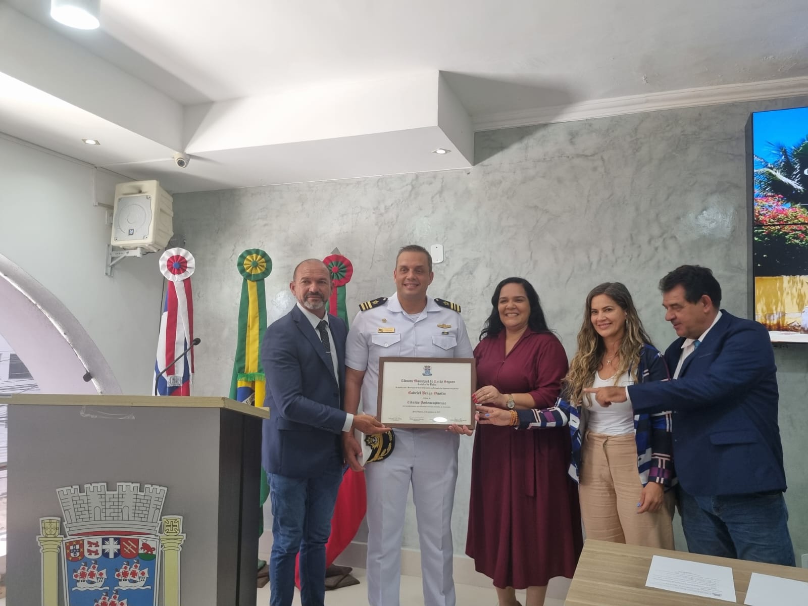 O vereador Roló, por sua vez, exaltou a trajetória do empresário Wilson Cruz, proprietário da tradicional barraca Vira Sol, na Orla Norte, lembrando que ele foi um dos pioneiros na estruturação das barracas de praia do município, servindo de inspiração para os modelos existentes atualmente. O parlamentar também enalteceu o trabalho exemplar do Delegado Wendel Ferreira Santos, há 14 anos à frente da segurança pública local, e o comprometimento do Comandante Gabriel Braga Onofre, da Capitania dos Portos, com as demandas da população e o bom funcionamento do órgão.
