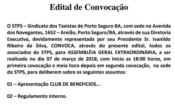 O sindicato está convocando uma assembléia para melhor discutir o assunto com a categoria, para a data de 07/03/2018, às 18:00 horas.