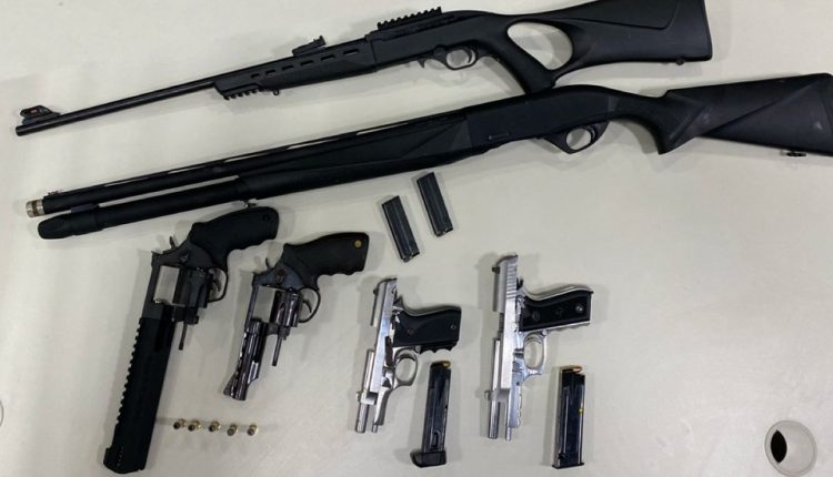 O veículo em que o trio estava também foi revistado e mais quatro armas foram apreendidas. O cinco foram levados para a delegacia e as armas de fogo foram apreendidas. Segundo a polícia, foram encontrados com os cinco: dois revólveres calibres, duas pistolas, uma espingarda e um fuzil semiautomático.