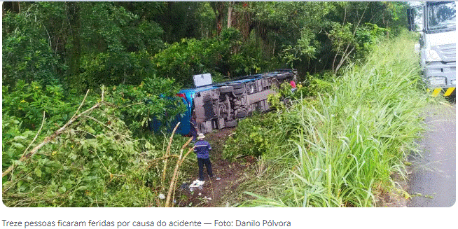 Treze pessoas ficam feridas após ônibus tombar em rodovia na BA