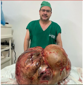 Uma equipe médica do Hospital São José do Avaí, em Itaperuna, no Noroeste Fluminense, fez uma cirurgia de emergência para retirar um tumor de aproximadamente 46 kg de uma mulher nesta quarta-feira (31).