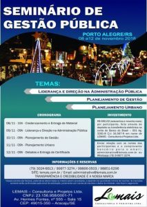 O seminário intitulado: “Seminário de Gestão Pública”, acontecerá entre os dias 08 a 12/11, e tratará dos seguintes temas: