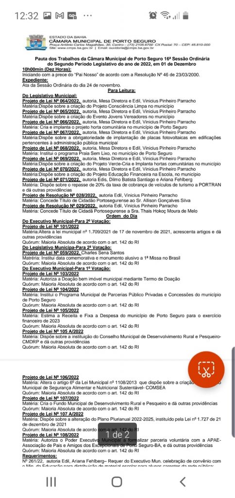 Projetos do Executivo Municipal, juntamente com Requerimentos e Indicações, além, evidentemente, do Pequeno Expediente, encerram os trabalhos da curiosa e incomum 16ª Sessão Ordinária do Segundo Período Legislativo do ano de 2022, nesta quinta-feira, (01/12).