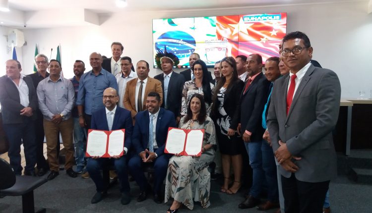 Estiveram presentes na sessão, além da prefeita Cláudia Oliveira e diversos secretários municipais, o prefeito da cidade vizinha de Eunápolis, Robério Oliveira, parte do seu secretariado, o presidente da Câmara e alguns vereadores da bancada governista eunapolitana.