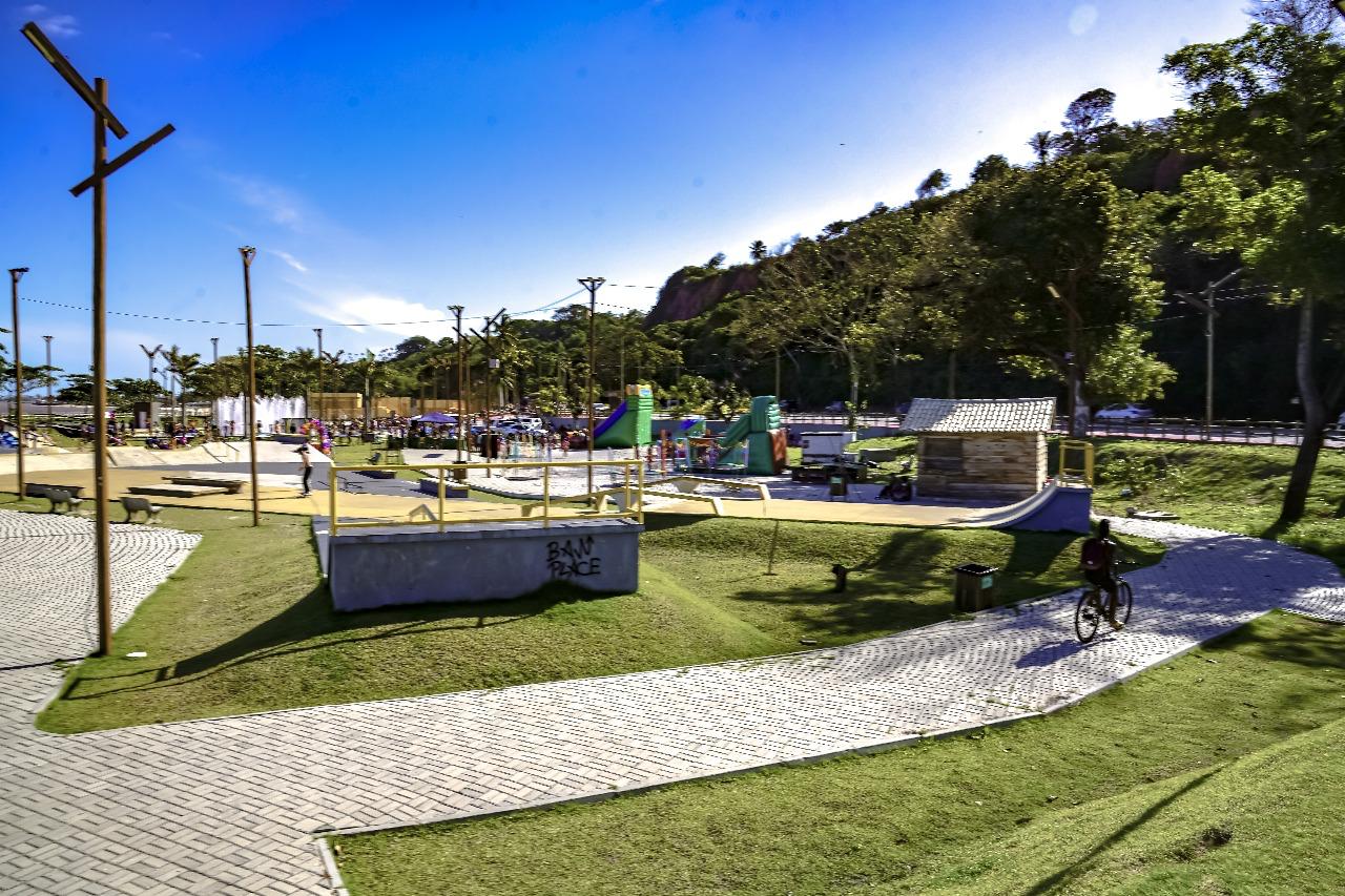 Outra melhoria foi o plantio de grama em toda a área do complexo, que deixou o ambiente mais agradável e convidativo para o público. O espaço, que já se tornou ponto de encontro especialmente de moradores e também de turistas, conta com pistas de skate, quadras de futevôlei, futebol de areia, basquete, fonte interativa e áreas de convivência, reunindo lazer, esporte e integração em um só lugar.