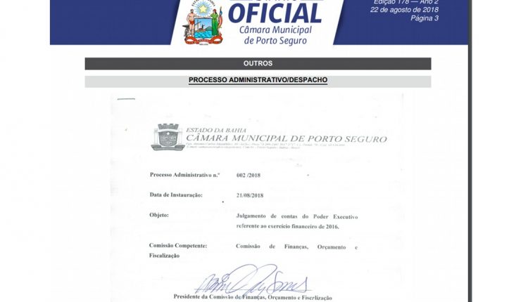 De acordo o Diário Oficial da Câmara, os documentos chegaram no dia 21/08 e já foram encaminhados, pela presidência, para o presidente da Comissão de Finanças, Orçamento e Fiscalização da Casa, vereador Bibi Ferraz, para que seja instaurado o devido processo legal, se informe a gestora e garanta à mesma ampla defesa e o contraditório.