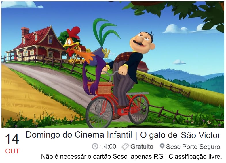 14/10, domingo | 14h | Sesc Porto Seguro.