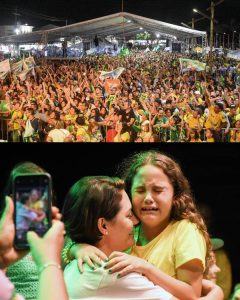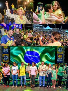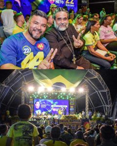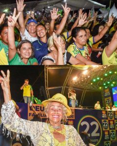 Presença ilustre no comício, a Primeira Dama do País, Michele Bolsonaro, convocou ao palco a conhecidíssima e folclórica Sra. Maria das Graças Caminha, que tem 93 anos de idade. Dona Graça aproveitou a oportunidade e fez uma emocionante oração, para abençoar o Presidente Bolsonaro. Na verdade, o comício foi contagiante, com presenças de muitas famílias e todas esbanjando muita alegria e animação e num clima de muitas bençãos e orações, principalmente na fala do Padre Kelmon, que também esteve presente.