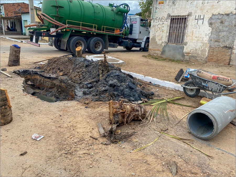 A previsão é de que os trabalhos de recuperação da rede de drenagem na Rua Monte Pascoal se estendam ao longo dos próximos dias.
