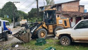 Durante a operação, foram realizados serviços de capina, poda, roçagem, retirada de entulhos e limpeza geral, com o apoio de maquinário pesado, caçambas e equipes de trabalhadores. Além disso, barracas e estruturas construídas de forma irregular foram removidas, enquanto alguns trailers foram realocados para o outro lado da via, garantindo melhor organização do espaço.