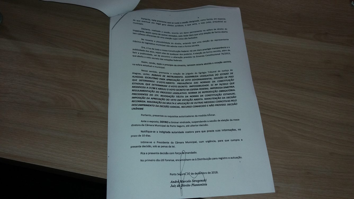 Não se questiona aqui o papel da justiça em ter acatado e expedido liminar favorável e reconhecendo a legalidade e legitimidade do pleito. Decisão judicial não se discute; cumpre-se! Entretanto, não poderemos relativizar o oportunismo, o desespero da derrota, o desrespeito à vontade da maioria da Casa e o desejo de mudança, também compartilhado pela maioria da população, aparentemente desconsiderados na inquestionável decisão do eminente juiz de Direito da Comarca de Porto Seguro, Dr. André Marcelo Strogensky.
