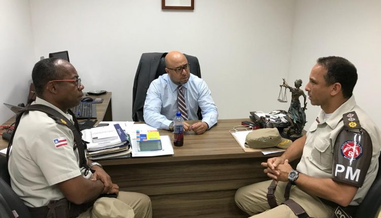 O juiz da 121ª zona eleitoral, que abrange os municípios de Porto Seguro e Santa Cruz Cabrália, Dr. André Strogenski, o Coronel da Polícia Militar, Sr. Nilton Paixão e o comandante do 8º Batalhão da Polícia Militar, Major França, se reuniram na manhã de sexta-feira (05) para uma reunião sobre a segurança das Eleições 2018, no gabinete do magistrado, no Fórum de Antônio Osório de Menezes, na Terra Mater do Brasil.