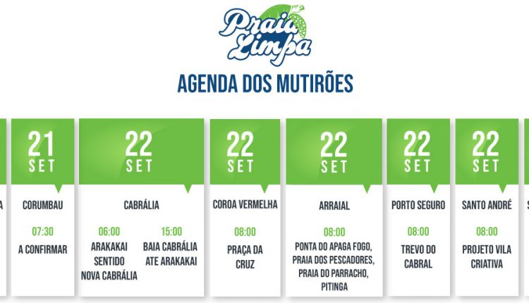 Unidos pelo combate ao lixo marinho, o evento será realizado nas praias da Costa do Descobrimento. O dia mundial de limpeza de praias e rios é realizado no mundo inteiro no mês de Setembro, é um dia que as pessoas voluntariamente contribuem para um mundo melhor, deixando as praias mais limpas e evitando que esse lixo chegue no mar.