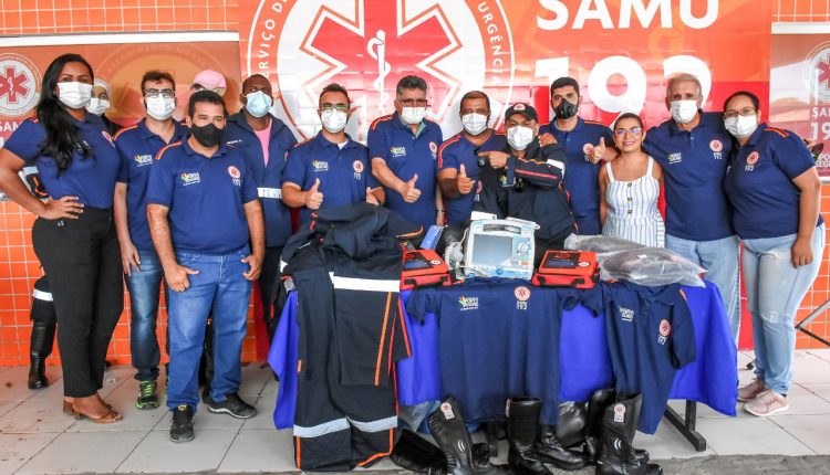 O prefeito Jânio Natal acompanhado do Secretário de Saúde Miguel Ballejo, do Secretário de Planejamento, Flamarion Matos, vereadores e superintendentes, realizou pessoalmente, a entrega de novos uniformes e equipamentos aos socorristas do SAMU, nesta quinta-feira (06/01).