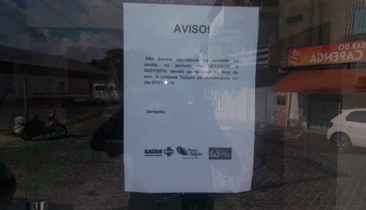 Postos de saúde em Porto Seguro suspendem atendimento que só serão retomados em 07/01/2019