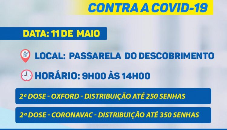 Prefeitura faz mais uma grande ação para aplicação da 2ª dose da vacina, nesta terça-feira, na Passarela do Descobrimento em Porto Seguro
