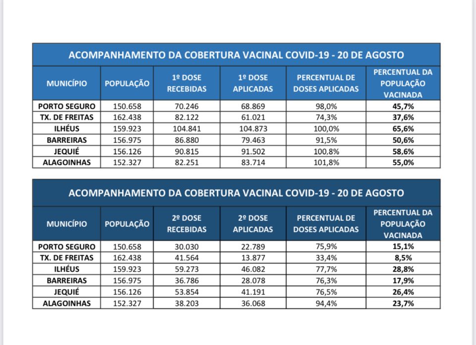 A administração do Governo Rui Costa que na sexta-feira passada (20/08) protocolou ação no STF, através da PGE-BA, contra o Ministério da Saúde, para que o mesmo regularize a entrega de vacinas contra Covid no Estado, tem agido de forma análoga ao governo federal, quanto aos repasses de vacinas para os municípios baianos.