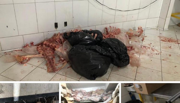 As carnes eram mantidas e acondicionadas de maneira inadequada, em ambiente sem as condições necessárias de higiene, não apresentavam a origem do produto, que foi interceptado, através de denúncia, antes de ser comercializado.