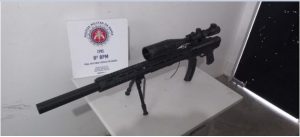 O cão farejador K9 Baruk do 8° Batalhão da Polícia Militar (BPM) de Porto Seguro localizou, neste domingo (5), um rifle equipado com mira telescópica, tripé, silenciador e munições em uma vegetação em Porto Seguro, na Bahia.