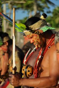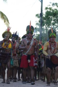 Do centro da aldeia ao encontro do mar, o ritual ganhou outro significado. Os primeiros raios foram conduzidos de volta como bênção e continuidade. Na casa do pajé, rezas e cânticos selaram um adeus marcado por respeito e espiritualidade, reafirmando sua presença eterna na história do território.