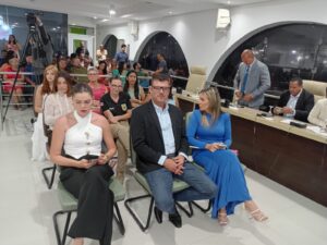 Entre os destaques da noite, a primeira-dama e secretária de Políticas para Mulheres e Bem-Estar, Cristiane Chiachio, foi agraciada com o Título de Cidadã Porto-Segurense. A homenagem foi concedida por meio de projeto do vereador Cassius Campeche, aprovado pelos demais parlamentares.