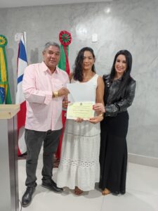 Ao receber o título, Cristiane Chiachio agradeceu aos vereadores e destacou a força das mulheres. “Sinto-me muito honrada com essa homenagem. Amo a Terra Mãe do Brasil. Quero dizer às mulheres que todos os dias são nossos. A coragem das mulheres move montanhas”, afirmou.