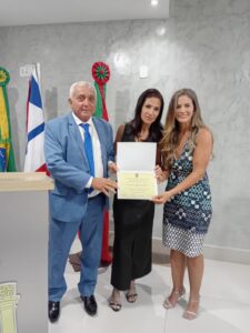 Durante a solenidade, o vereador Cassius Campeche destacou a importância da homenagem concedida à primeira-dama e secretária Cristiane Chiachio. “Essa homenagem representa o carinho e a admiração que Porto Seguro tem pela senhora”, afirmou.