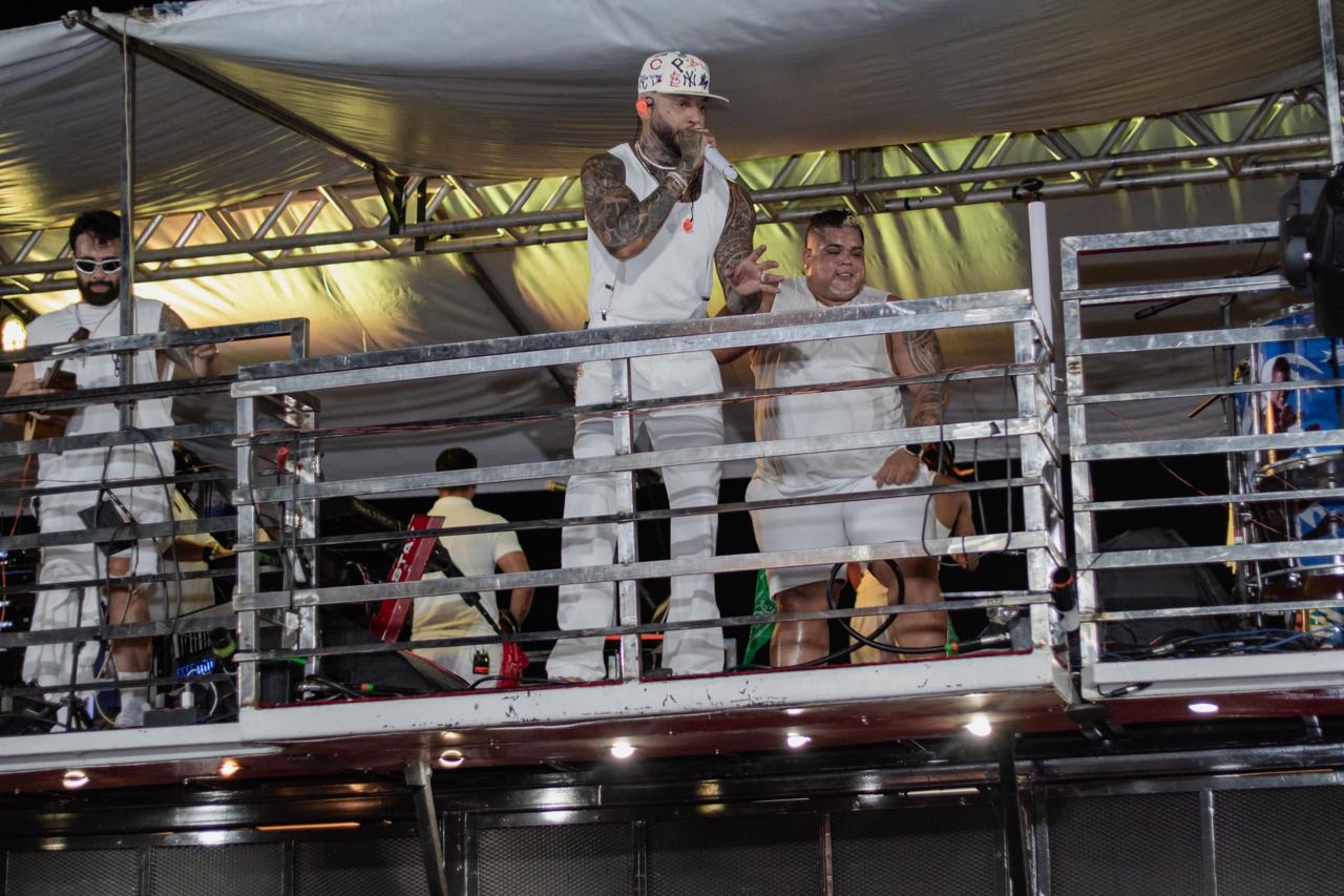Principal atração da noite, a banda Chiclete com Banana conduziu a virada com um show intenso e participativo. Clássicos do repertório se sucederam sem pausa, acompanhados em coro pelo público, com percussão marcante e metais dando o tom da festa. A contagem regressiva foi seguida por uma intensa queima de fogos que iluminou o céu e o mar, oficializando a chegada de 2026. Na sequência, Lukas Miranda manteve o público em clima de animação.