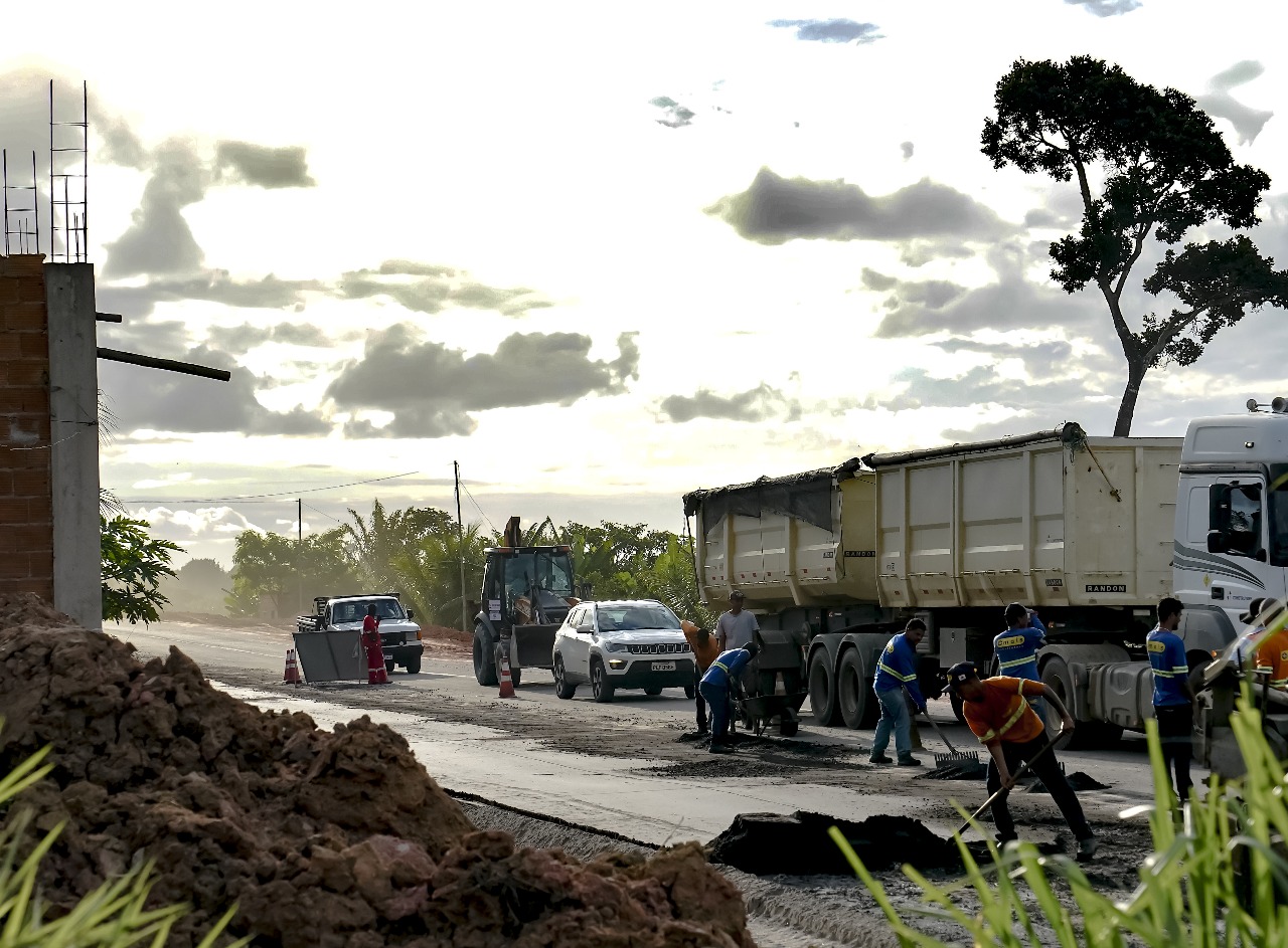 Ao longo desta semana, equipes intensificaram as ações no local, aplicando a camada asfáltica em um dos lados da via, enquanto o outro trecho recebe serviços de terraplanagem. O avanço é visível e já muda a dinâmica de circulação na região.