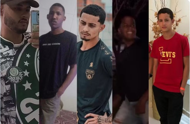 Vítimas foram identificadas como Anderson Ricardo da Silva Soares, Ismael Pereira dos Santos, Jeovanny Silva Marinho Lucena, Rafael de Carvalho dos Santos e Samuel Ramos Carneiro Bisneto (da esquerda para direita) — Foto: Reprodução/Redes Sociais