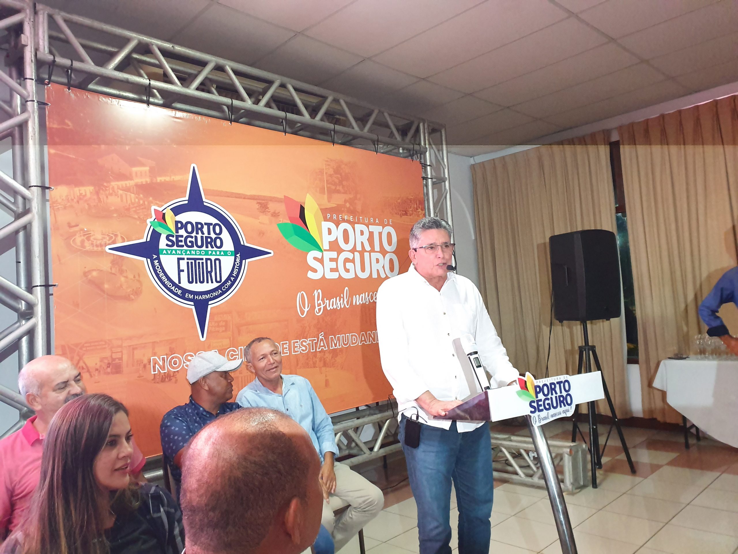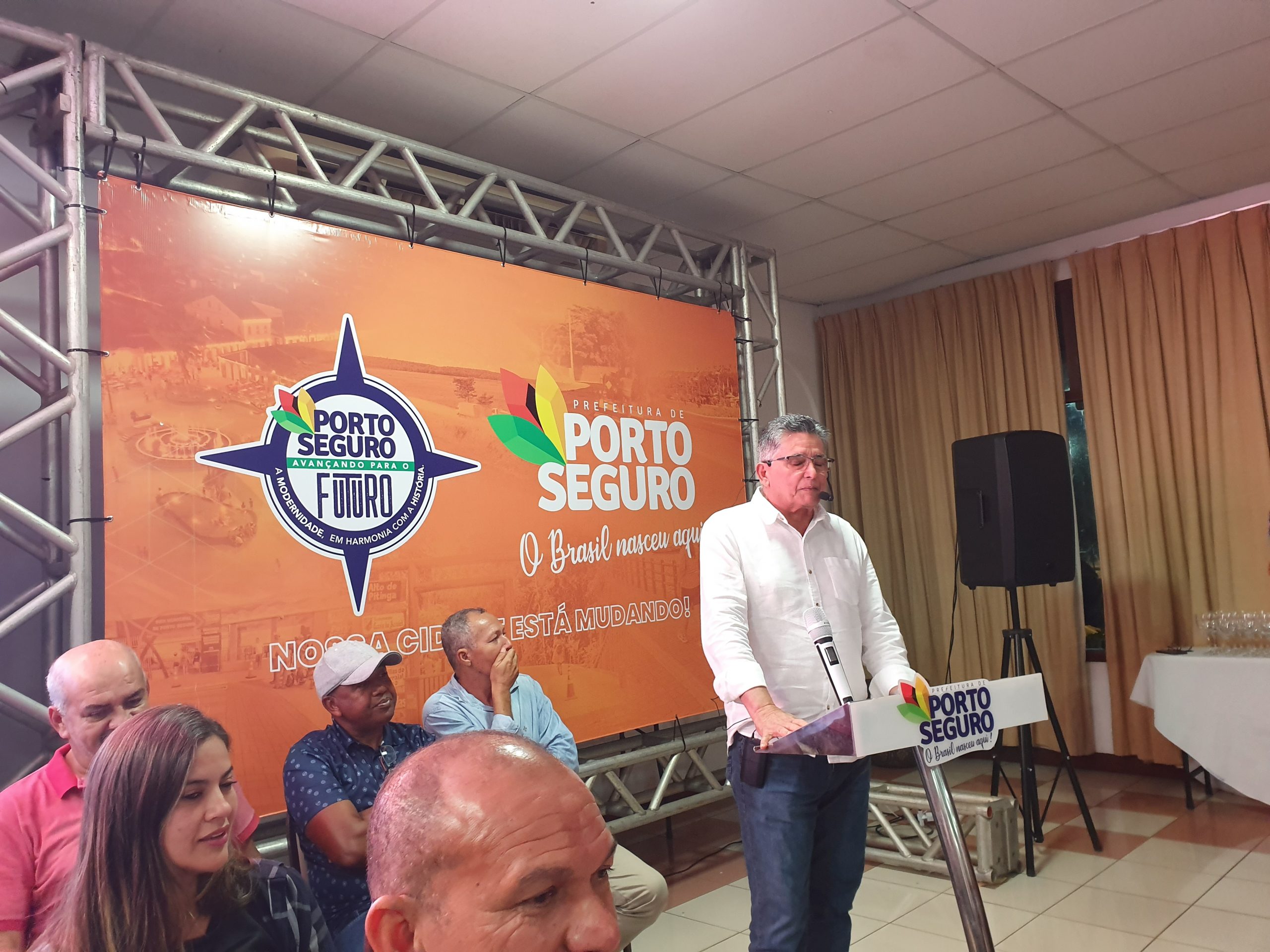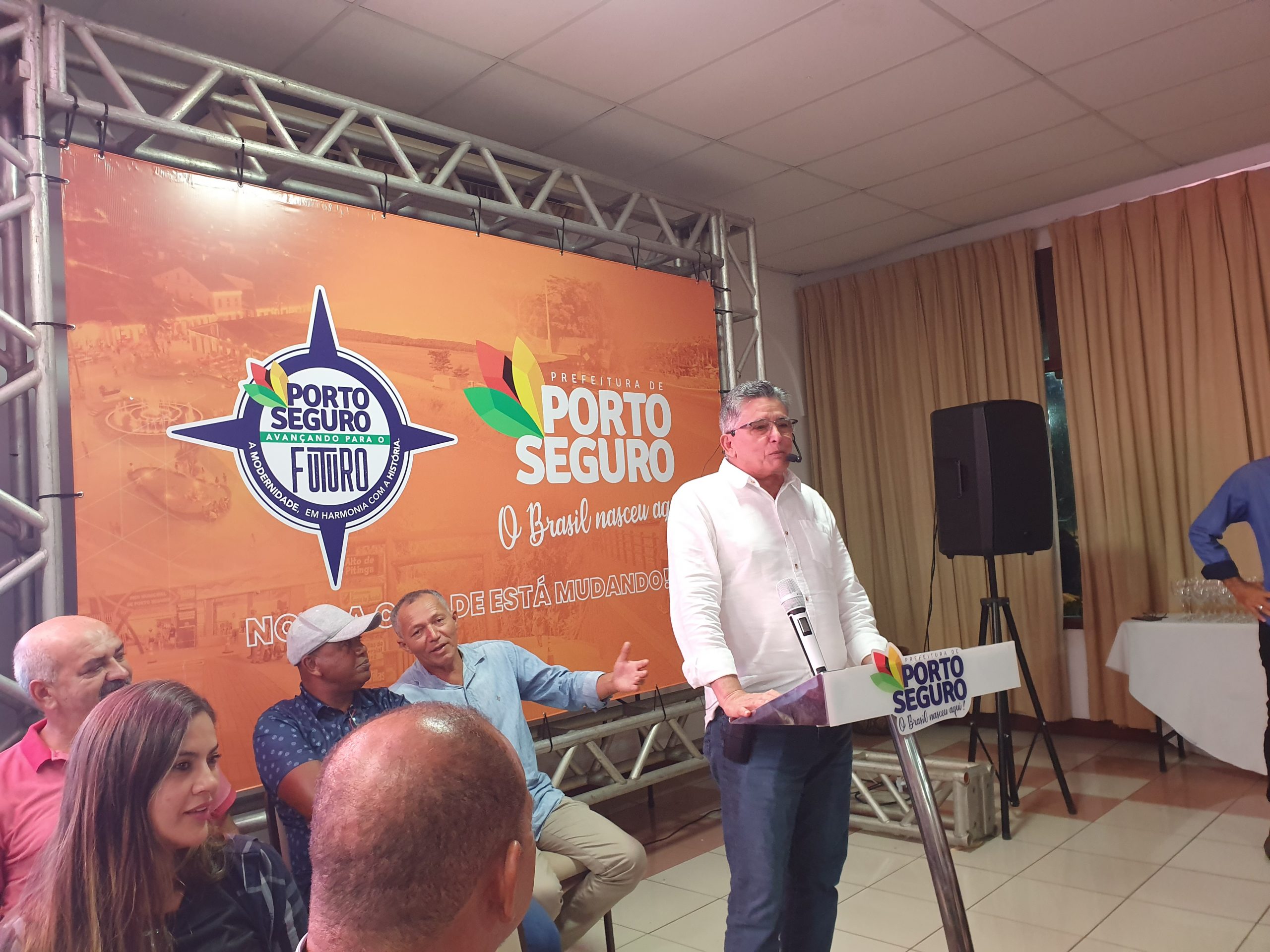 Em seu discurso, o prefeito Jânio Natal recordou dos relevados serviços dos antecessores da pasta como o pastor João Portela e Cláudio Soares, a quem, carinhosamente chamou de “bebê” e destacou o esforço político empreendido, com a participação do Governo do Estado e do Governo Federal, para a composição de uma administração que contemple o arco de alianças já delineado e que, certamente, com serenidade e sabedoria, o reconduzirá à prefeitura do município de Porto Seguro.