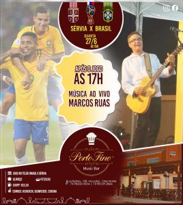 Amanhã, por exemplo, 27/06, logo após o jogo de Brasil X Sérvia, a casa de show Porto Fino Music Bar proporciona aos admiradores da fina e genuína música popular brasileira, o cantor e compositor Marcos Ruas.