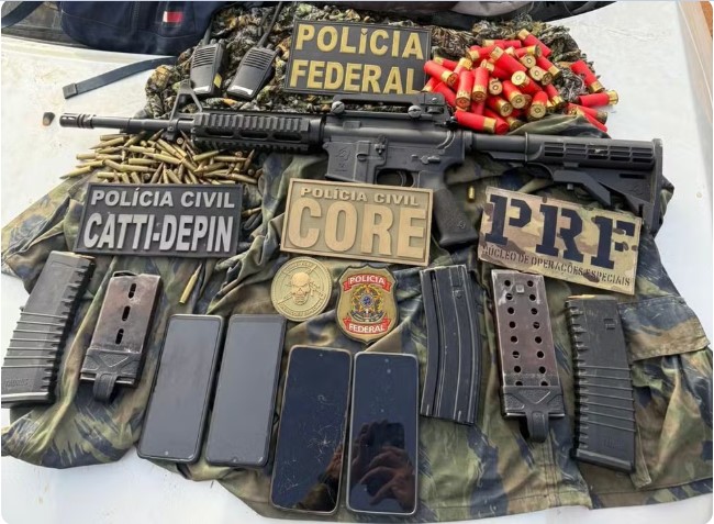 Os presos foram identificados como Gerdion Santos do Nascimento, de 51 anos, e Welington Ribeiro de Oliveira, o cacique Suruí Pataxó, que já tinha sido preso em setembro de 2025. Com o segundo suspeito, foram apreendidos um fuzil, um carregador e munições.