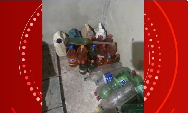 Segundo a polícia, embalagens de refrigerante com cheiro e vestígios de álcool foram localizadas em um bar ao lado da casa onde os dois estavam. No mesmo estabelecimento, também foram encontradas embalagens parecidas cheias de gasolina.