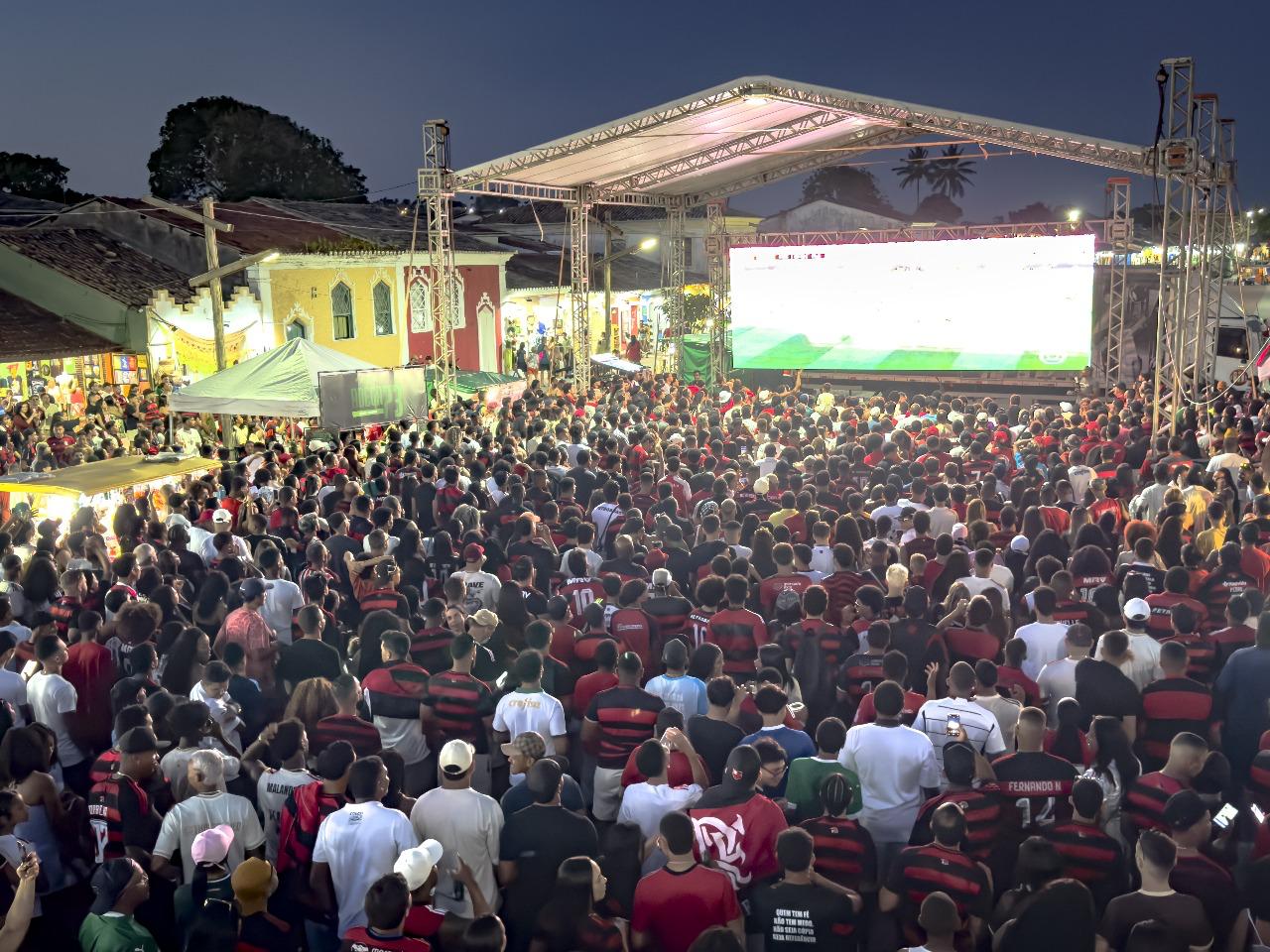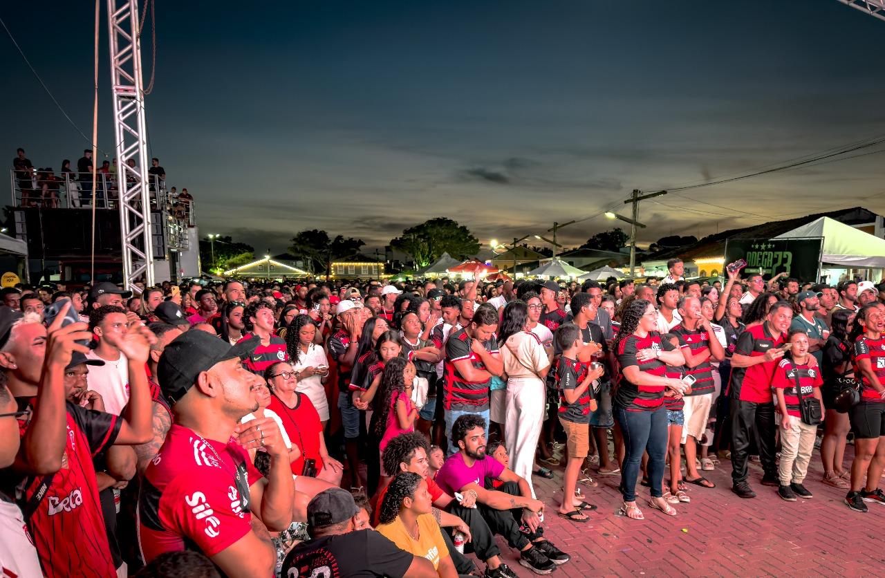 A Passarela da Cultura, no coração de Porto Seguro, viveu uma noite inesquecível neste sábado (29/11). Milhares de torcedores de Flamengo e Palmeiras transformaram o espaço em um grande caldeirão de emoção durante a transmissão ao vivo da final da Copa Libertadores da América, em Lima, no Peru.