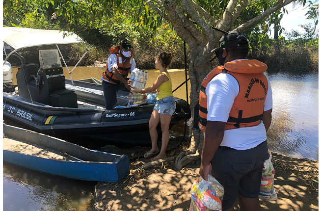 A Delegacia da Capitania dos Portos em Porto Seguro (DelPSeguro), em ação de apoio à comunidade ribeirinha vítima das fortes chuvas no sul da Bahia, realizou, nesta terça-feira (11/01), a entrega de cestas básicas, galões de água potável e colchões às comunidades ribeirinhas do Rio Buranhém, no município de Porto Seguro.