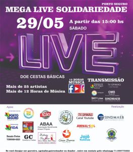 O objetivo da Live, coordenada e organizada pelo cantor e delegado da Ordem dos Músicos em Porto Seguro, Sérgio Couto, é arrecadar a maior quantidade possível de alimentos para serem doados aos artistas da cidade, que há mais de um ano estão impedidos de fazer shows.