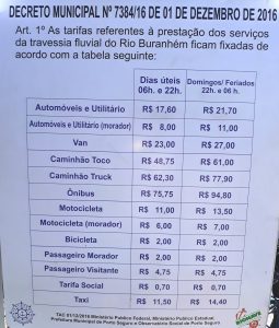 Quatro embarcações estão em operação. As saídas ocorrem a cada 30 minutos, e o tempo de espera para embarque na balsa é de 1h30 para veículos e 30 min para pedestres, neste sábado.