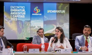 Com a Embratur trataram sobre a estratégia de inteligência mercadológica com disponibilidade de dados para os municípios; necessidade do fortalecimento do Brasil no exterior; reposicionamento da Marca Brasil; e diversificação da segmentação para promoção.